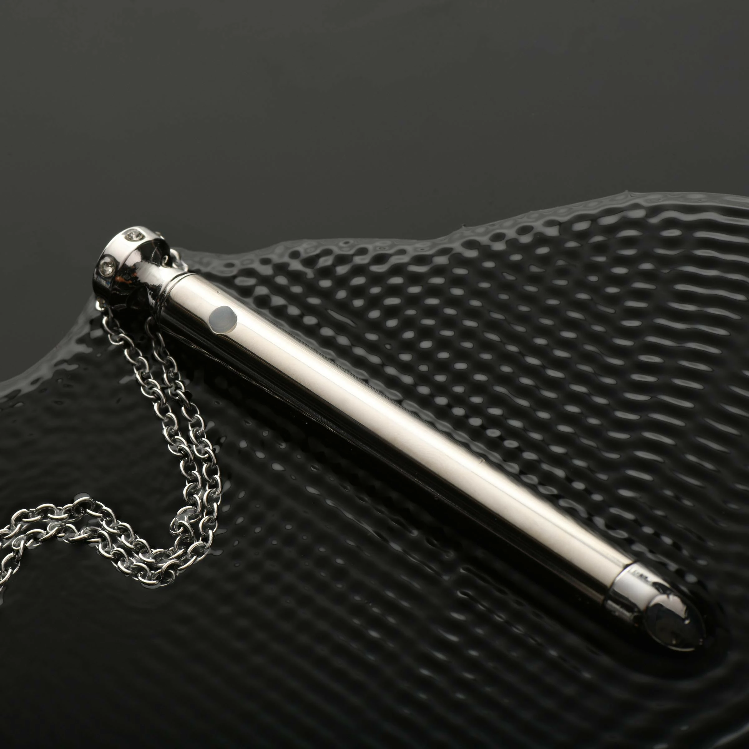 Upgrade your accessories and flag that you’re just a little sensual and wild with this vibrating necklace! Have pleasure within reach and enjoy 7 different vibrating modes! Enjoy using any lubricant type with this nickel-free, metal rod. With its round, pinpoint end you get to enjoy giving a buzz to that specific, sweet, hard-to-pinpoint spot! After use, wash with warm water and mild soap, spray with a toy cleaner and wipe dry. To charge, carefully unscrew the top of the vibrator to reveal the charging dimple. Screw the pin end of the charging cable into the dimple and connect the other end to a USB port or adapter. Button on charging cable lights up while charging. Remove from charger promptly once fully charged.
