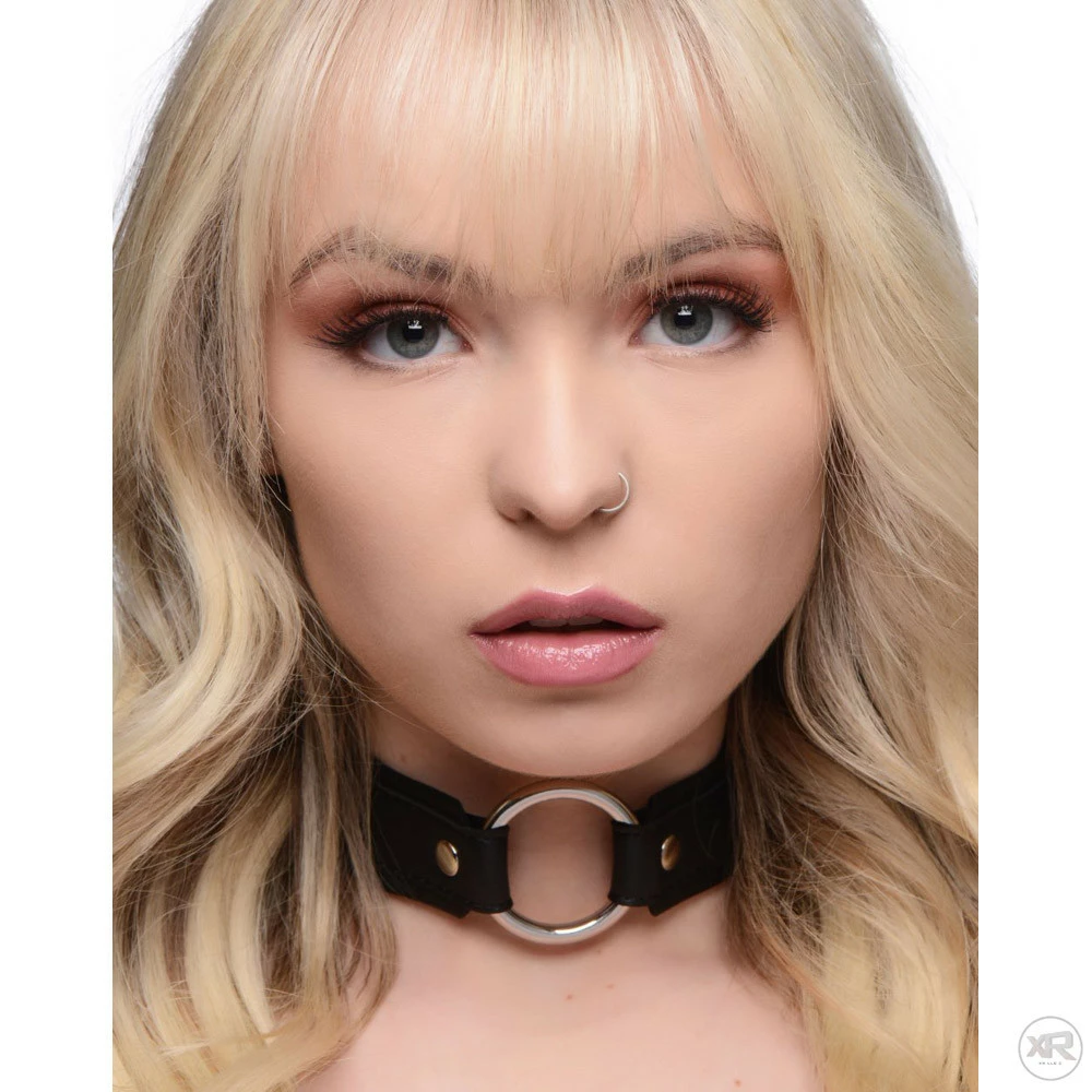 This O-ring centerpiece is a familiar symbol for any slave or submissive. Enjoy the subtle aesthetic or show off the collar to your kinky friends.