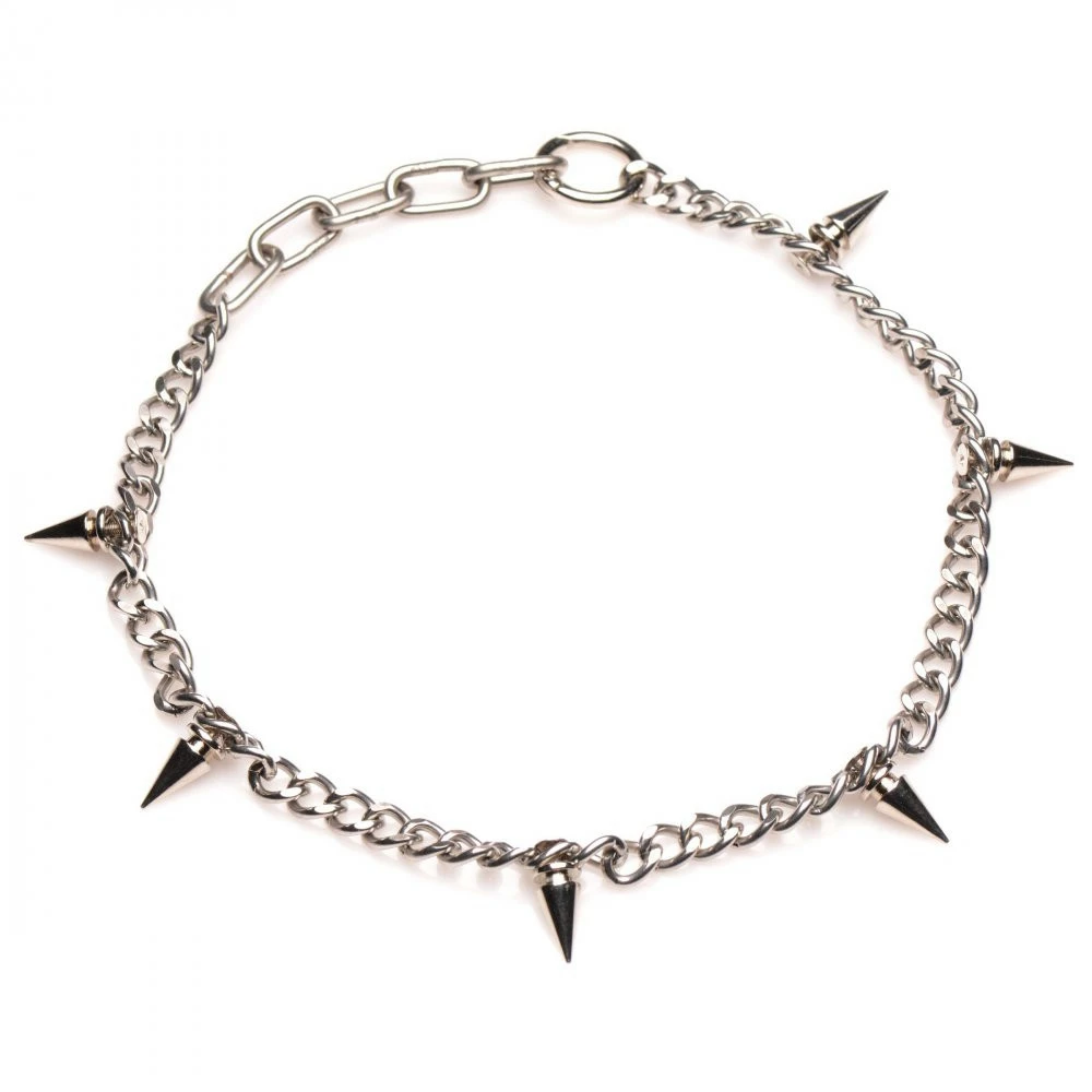 Add this to any outfit to give it a bit more of an edge! Whether you’re flagging that your Master or Dom/me must be conferred with before speaking to you, or if you simply like the style, enjoy wearing a metal, chain collar with spikes on it during your everyday or during scenes! The spike studs can be taken off if you want to take the punk style down a notch, or you can find other studs to replace them with and customize!