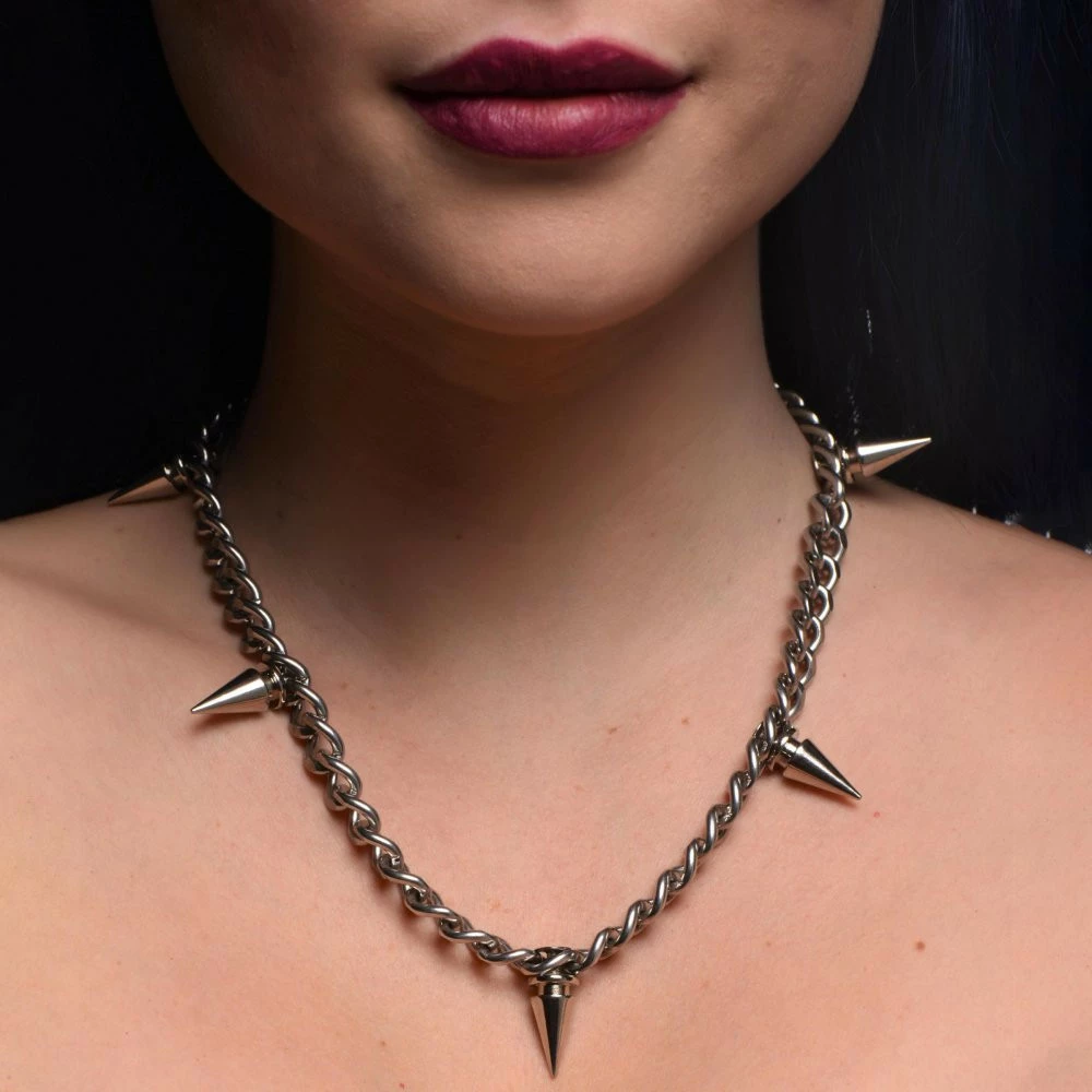 If you love subtle flags that you’re loved, protected or owned by someone but don’t want to wear a traditional collar, this spiky punk necklace may be right for you! Even if you don’t wear it to symbolize anything, you can evoke edginess with stainless steel metal chains and spikes around your neck! Like every rose has its thorns, this necklace is both beautiful and has pointed spikes to warn others of your double edged nature. If you want to customize it or change it out with different color or shape studs, you simply unscrew the spikes to do so. To close, simply snap the O-ring clip onto any of the chain rings. To adjust, choose a different ring to attach to so you can have a loose or tight collar!