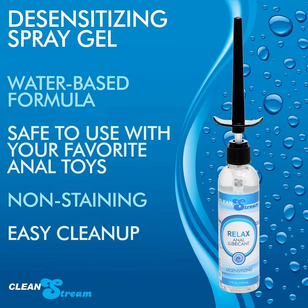 CleanStream Relax Desensitizing Anal Lubricant offers a silky, non-sticky formula with a touch of desensitization. This lubricant has the added benefit of 2% Lidocaine to take the edge off any discomfort while still allowing you to feel the pleasurable sensations of being probed, with a silky feel for a smooth, sensual ride. This lubricant is great for use with all toy and condom materials, and won’t stain you sheets or clothing. It contains no glycerin, which is ideal for anyone who is prone to bacterial infections or dislikes the stickiness found is most water-based lubricants. CleanStream Relax Desensitizing Anal Lubricant is made in the USA.