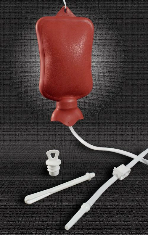 This is your over the counter standard water bottle douche kit. It comes with everything you need to get started in enema play.