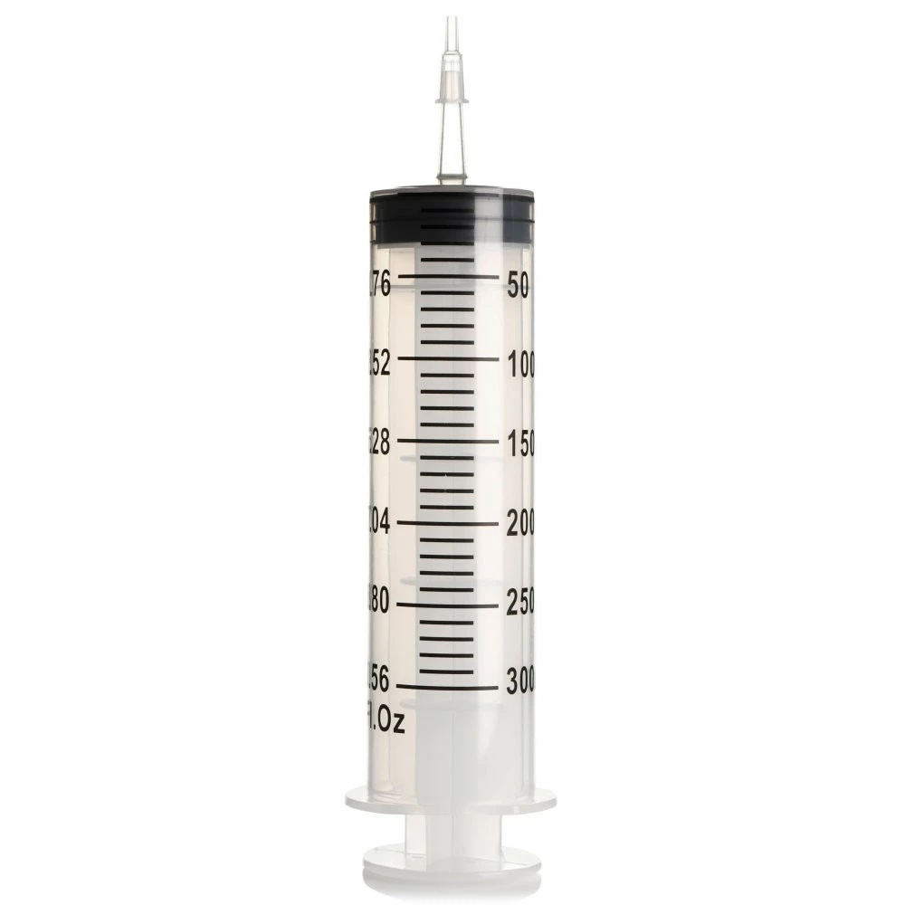 Measurements – 300ml: Syringe: 10 inches length, 2.1 inches width, holds up to 300 ml of liquid. Tube: 16.25 inches length, 0.4 inches width.