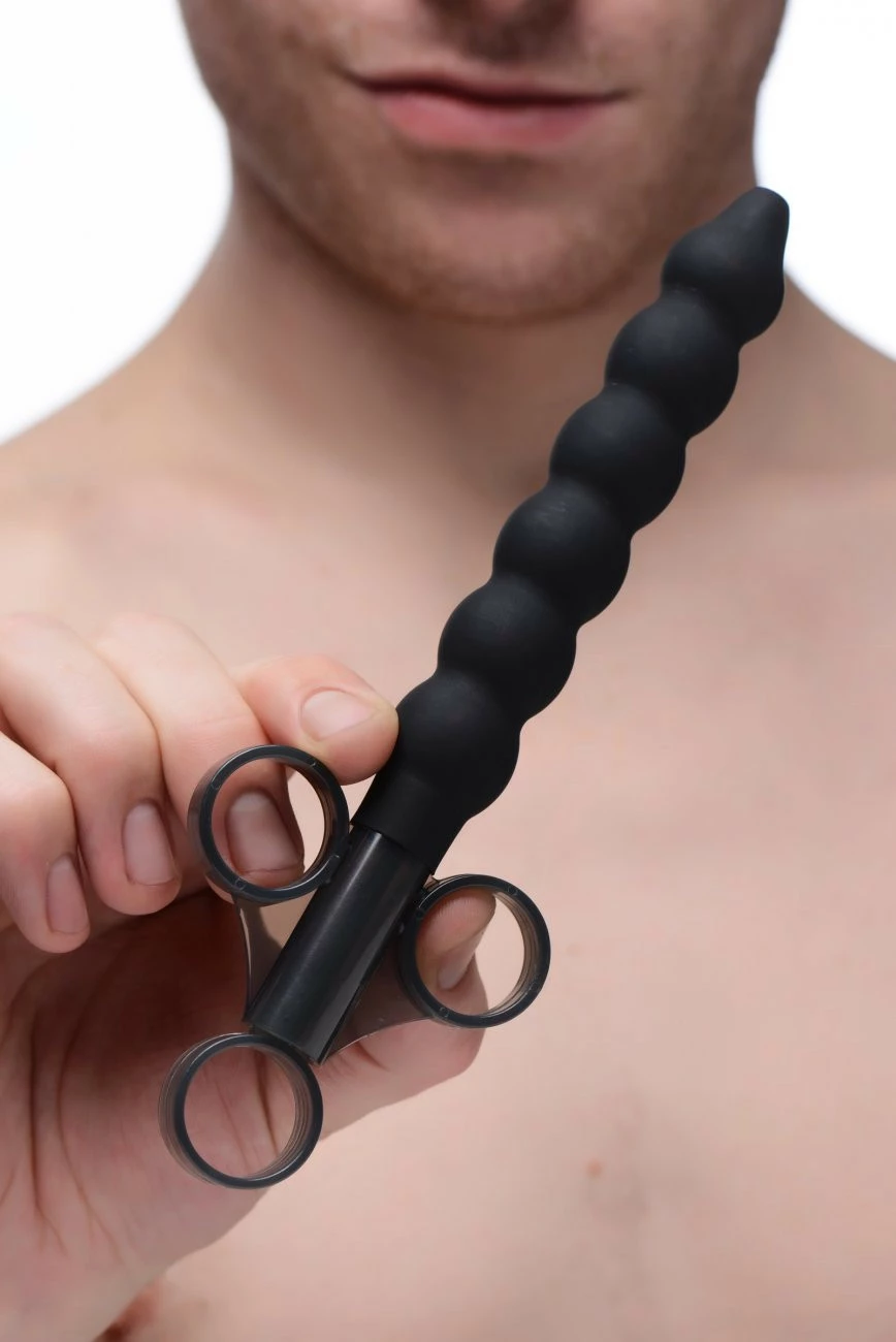 Shoot your load of lubricant good and deep as the beaded design of this lube launcher stimulates your asshole. This useful accessory uses a simple one-handed design with convenient finger loops for ease of use. Just fill the 5″ shaft with whatever liquid you want, and inject with one simple plunge. Made of high-quality silicone, this applicator is phthalate-free and non-porous. Clean after use with a mild soap or toy cleaner and avoid use with silicone lube to preserve the material.
