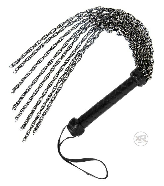 Approach your partner, with this gunmetal flogger in your hand. Let them marvel at the heavy weight and metal links. Give them a taste of sweet impact from the grey chain. Each tail has a smooth link, so as to not cut the skin. The leather wrapped handle (with looped leather strap) allows you to maintain that firm grip.
