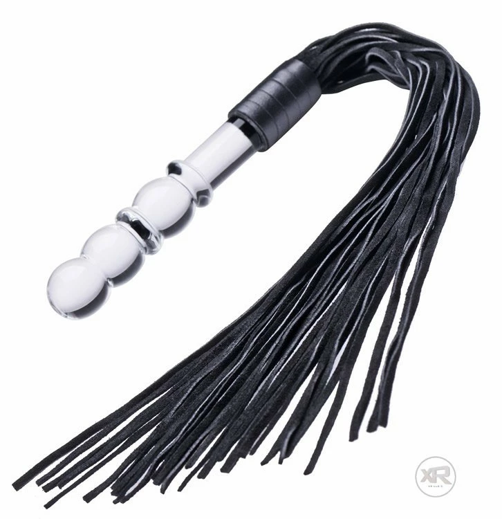This elegantly handcrafted impact toy also doubles as a dildo for pussy or ass! Experience incredible sensation, inside and out with the soft suede falls of the flogger and the smooth, hard glass of the significantly textured dildo. The durable Borosilicate glass can be heated up or cooled down for temperature play. The falls will even make it look like a tail when it’s sticking out of your sub’s ass! You control how hard the impact is on your partner, delivering a light flogging or a hard thrashing. This luxurious toy is a must-have for the Dom with refined tastes.