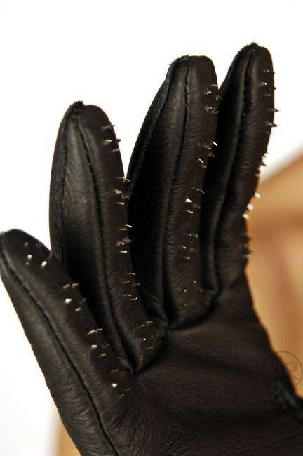 Get into sensation play! Feel your skin tingle as you slowly glide them over your partners body. These tiny spikes will get their attention quickly. Our leather vampire gloves have almost 100 steel pricks perturbing from the leather glove. The tiny spikes are about 1/8″ long, and will are meant to tease and lightly claw at your skin, these pricks will not puncture the skin unless they are used out of context, such as slapping, grabbing or apply a lot of force. The gloves closes tightly around the hand with a simple snap feature. With all our gear please use caution.