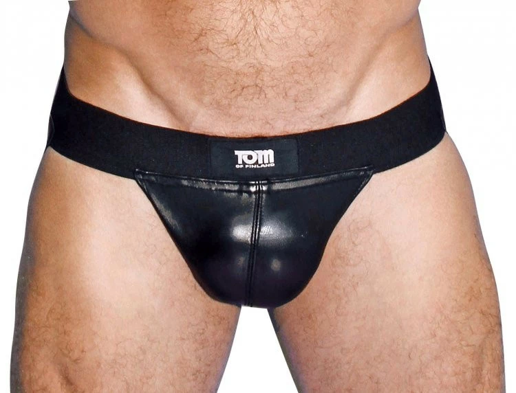 Transform into one of Tom of Finland’s iconic BDSM masterpieces when you slip into this indecent leather jockstrap. The soft, stretchy waistband ensures a comfortable fit for a wide range of sizes, wrapping seductively around your asscheeks but leaving your hole exposed for a rimjob or a fuck! The sturdy leather that clings wickedly to your cock and balls immediately draws the eyes, beckoning your playmate towards your groin. The Tom of Finland logo lets your partner know exactly what kind of night they’re in for!