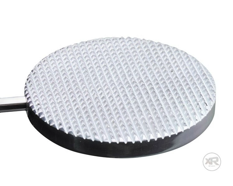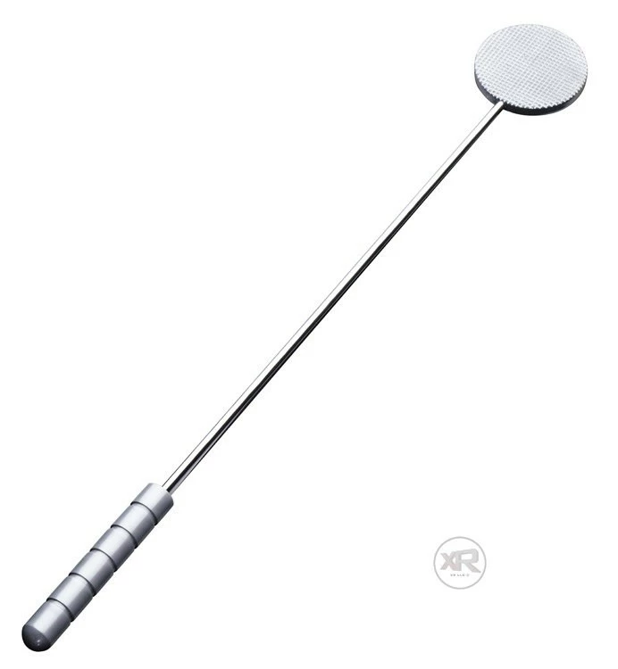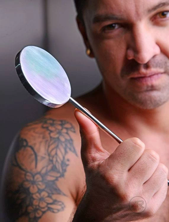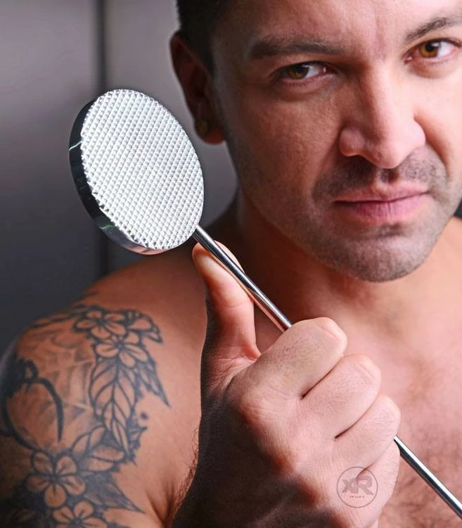 This extreme paddle is no joke! Not for the faint of heart, this crop-shaped paddle is made of heavy aluminum, with a spiked waffle texture on one side to tenderize your masochist’s delicious meat without breaking the skin! Firm and inflexible, this weapon of ass destruction will deliver a hard thud, whether you’re using it on the spiked side or the flat, smooth side. The ribbing of the handle allows you to maintain a sure grip as you swing, giving your pain slut the kind of pain and pleasure that they have been craving!