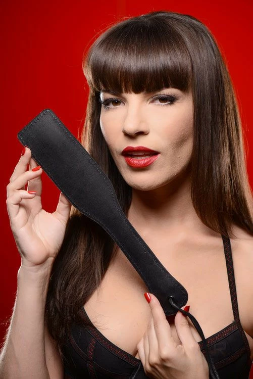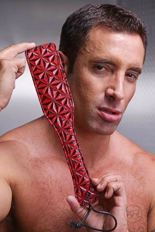 Featuring a steel enforced design, this paddle is ready to help you dish the discipline to your partner. The exterior is decorated with a red and black diamond pattern on one side, and smooth faux leather on the other. The handle has a loop for hanging or for maintain a firm grip.