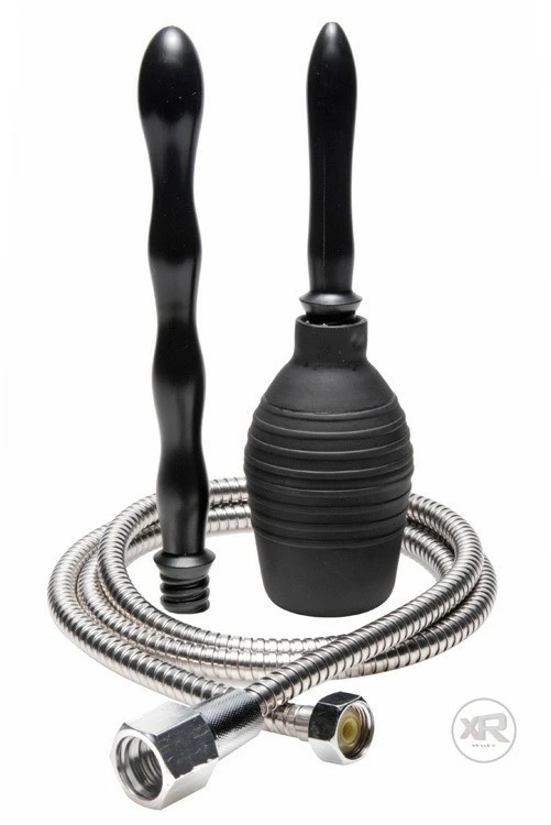 As a kit that you can easily take with you, this enema cleansing system is your total setup for stimulating, and sexy, enema play. The stainless steel hose attaches to a sink or shower head. You can then apply one of the two cleansing nozzles and enjoy probing enema play. If you don’t have a sink or shower head within immediate reach, the travel bulb fits the bill. Simply fill it with your favorite liquid and enjoy. The travel bulb also works with the cleansing nozzles (tip adapter included to assist with compatibility).